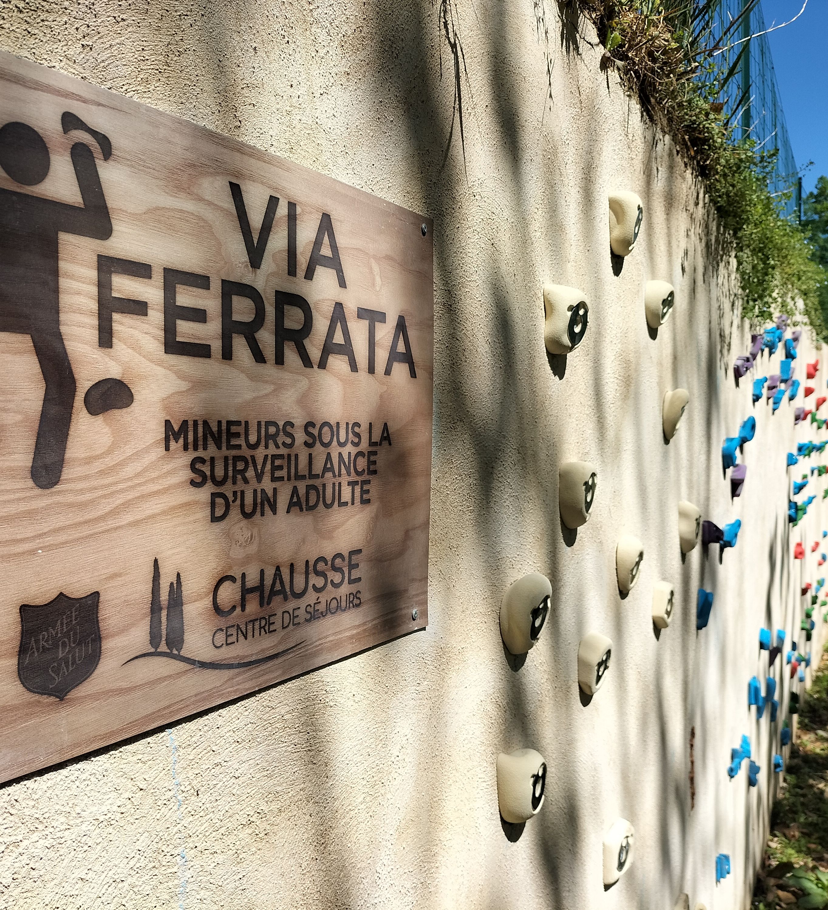 Installée avec le soutien du club "Alès 'calade", notre mur d'escalade "bloc" pour déplacement latéral permet de goûter aux plaisir de la grimpe en toute sécurité!