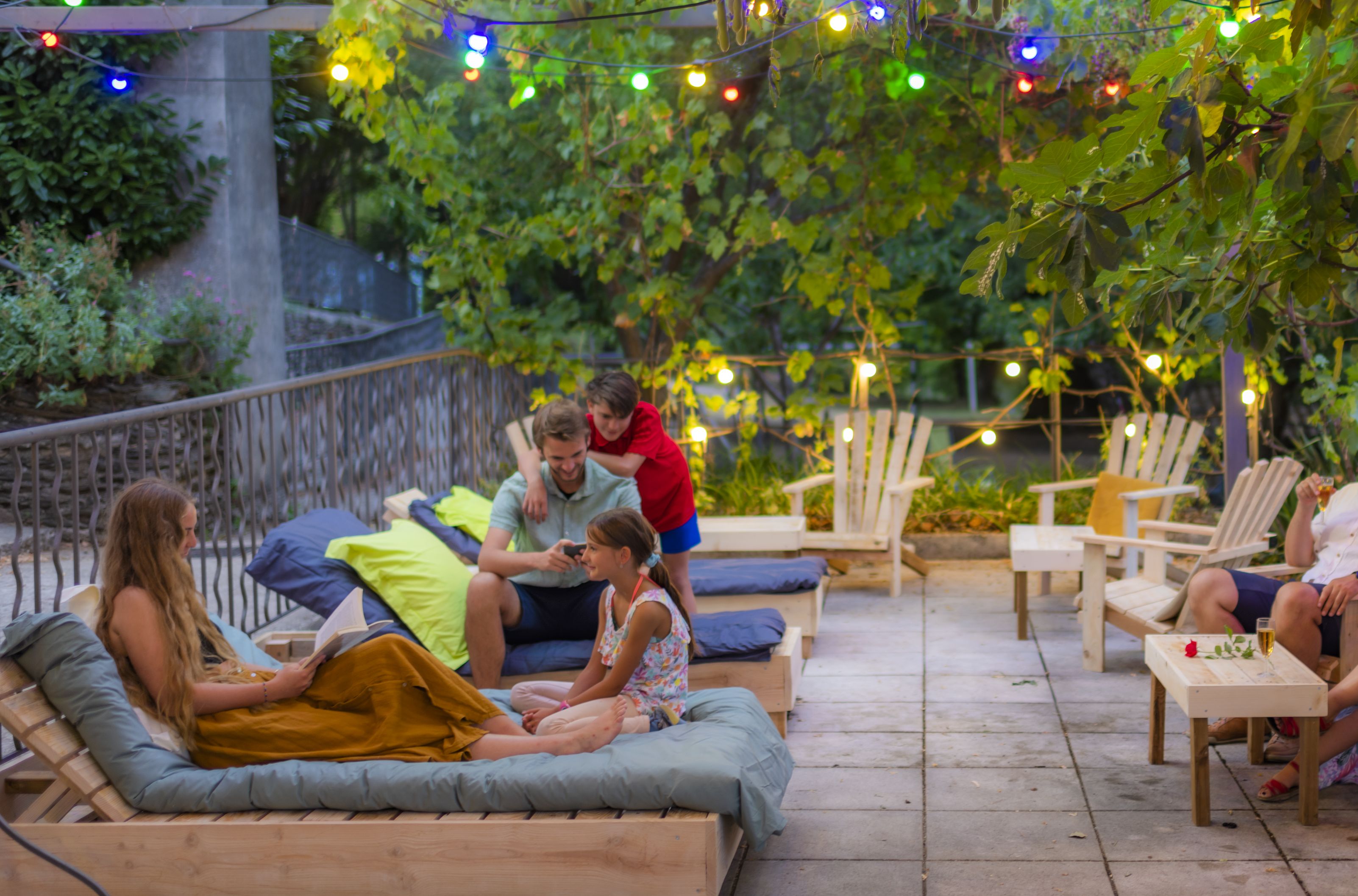 Mais c'est après la tombée de la nuit avec son éclairage lumineux que se dévoile toute la magie de son ambiance cosy, avec vue sur l'espace aquatique.