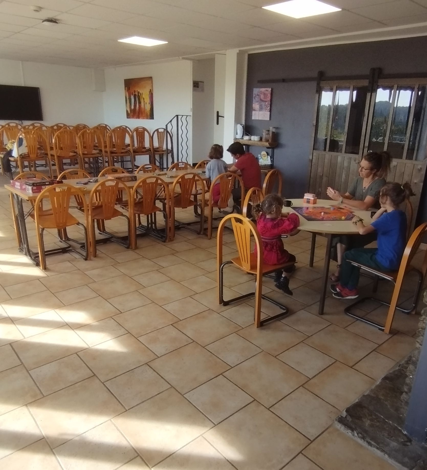Salle de référence pour les classes de découverte, elle dispose de nombreux équipements pour tous les temps libres ou de jeux