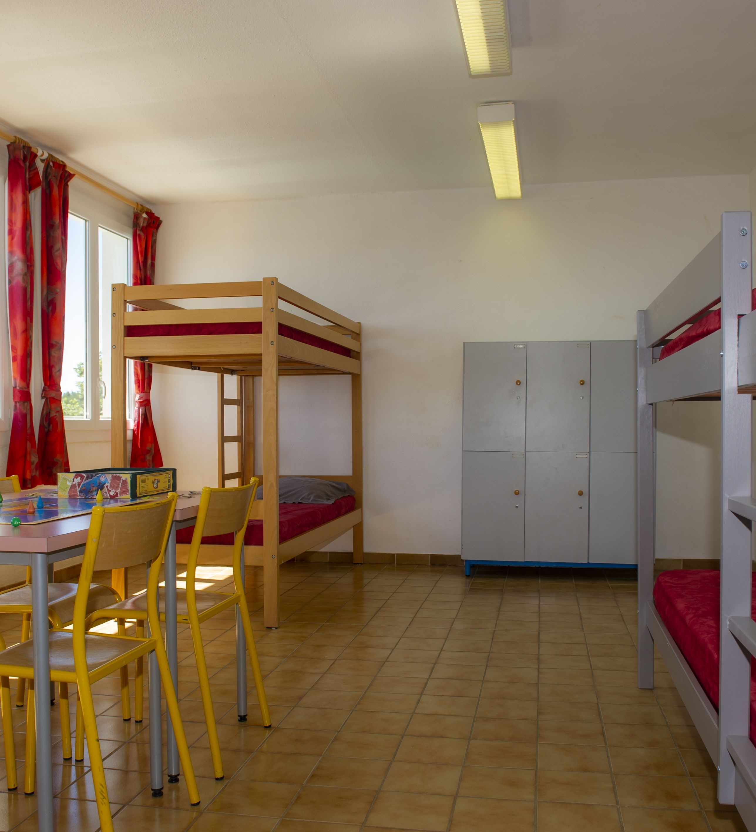 - Collectives : 63 places en lits superposés, réparties dans 10 chambres allant de 2 à 12 lits, sanitaires à l'extérieur des chambres.