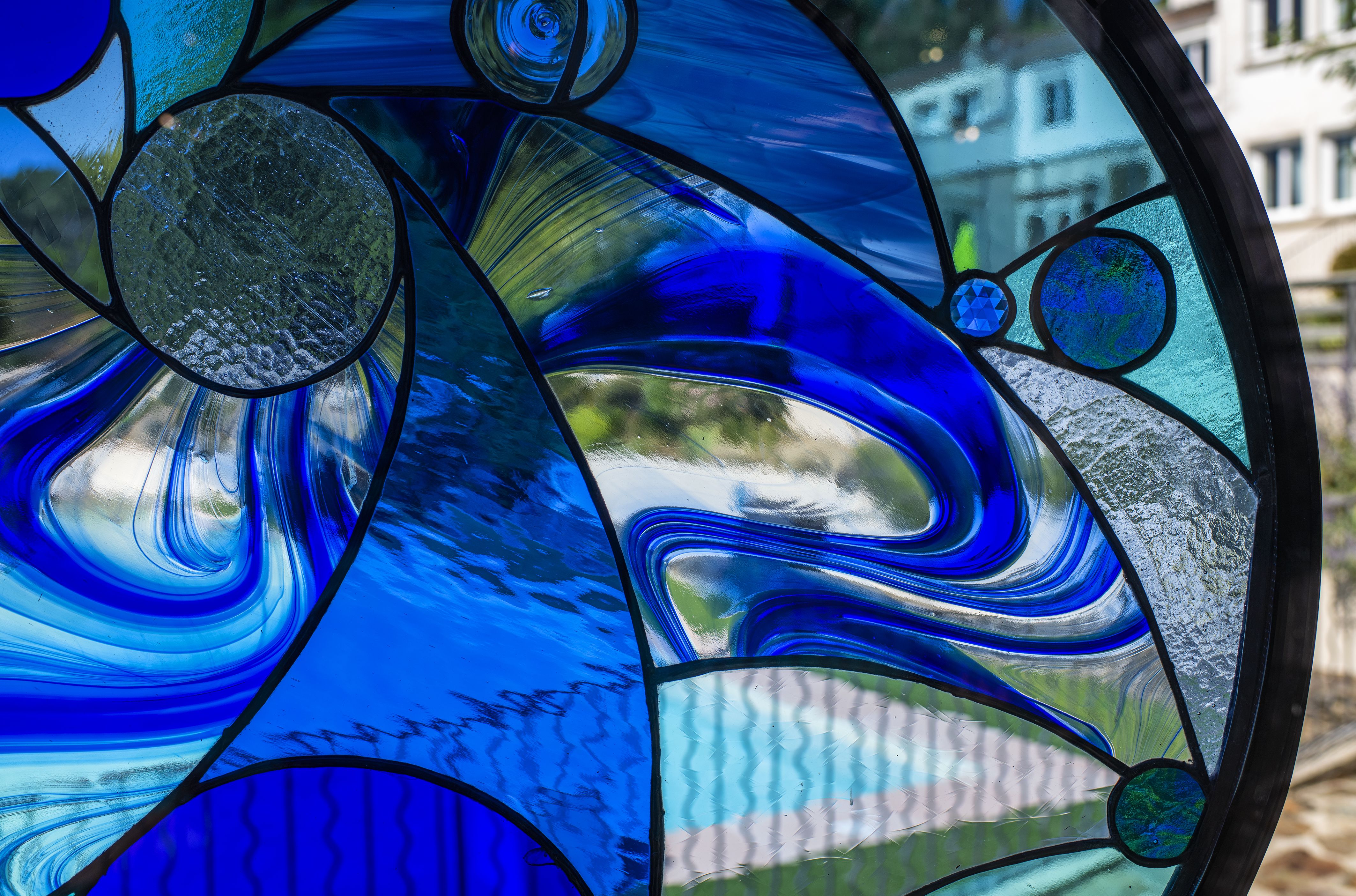 Une exposition de vitraux uniques réalisés par des bénévoles de la Fondation Armée du Salut décore ses murs